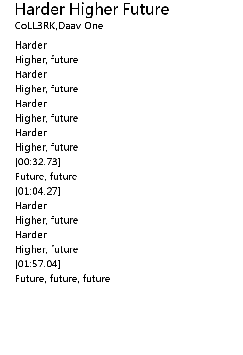| [01:53.76] | Higher, future |