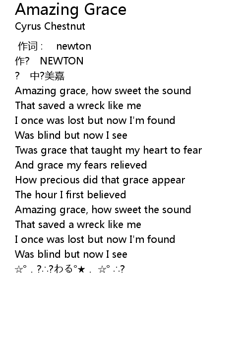 | [02:50.10] | Amazing grace, how sweet the sound |