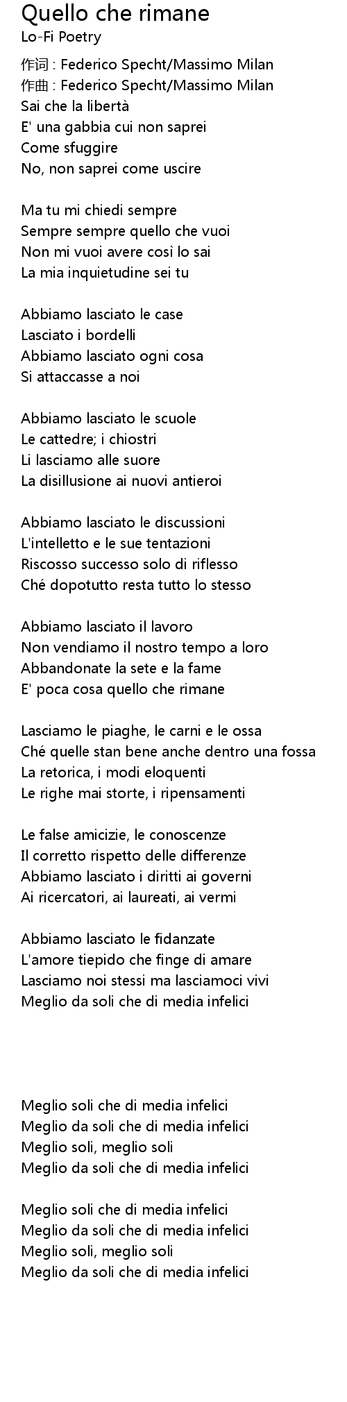 | Song | Quello che rimane |