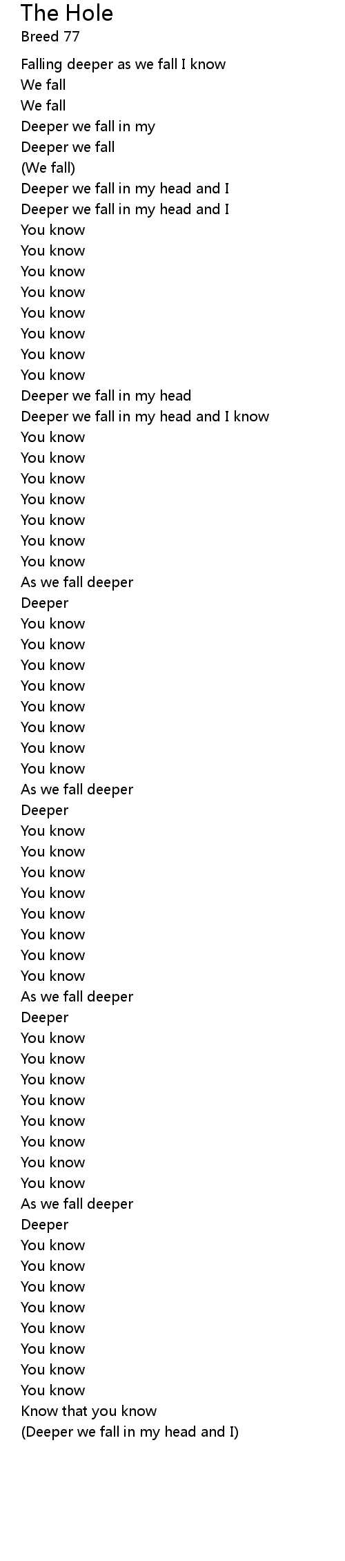 | Falling deeper as we fall I know | |
