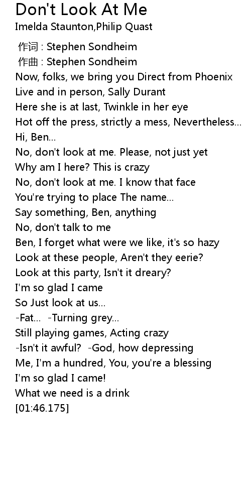 | [00:35.540] | No, don' t look at me. I know that face |