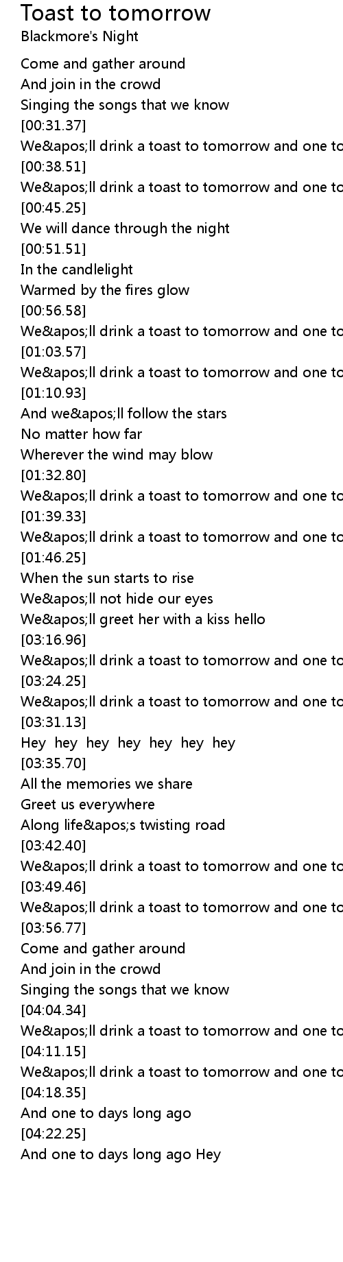 We'll drink a toast to tomorrow and one to days long ago |