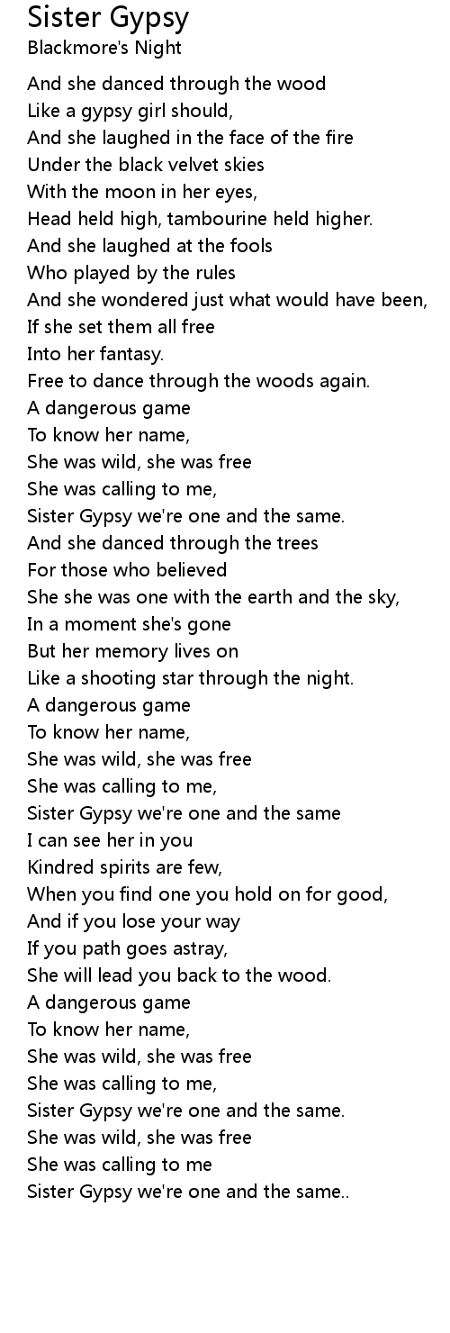 Sister Gypsy we're one and the same.. |