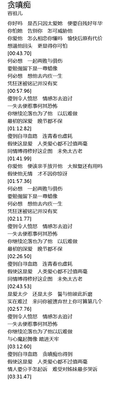 | [03:12.85] | 傻到自寻血路 贪嗔痴也得到 |