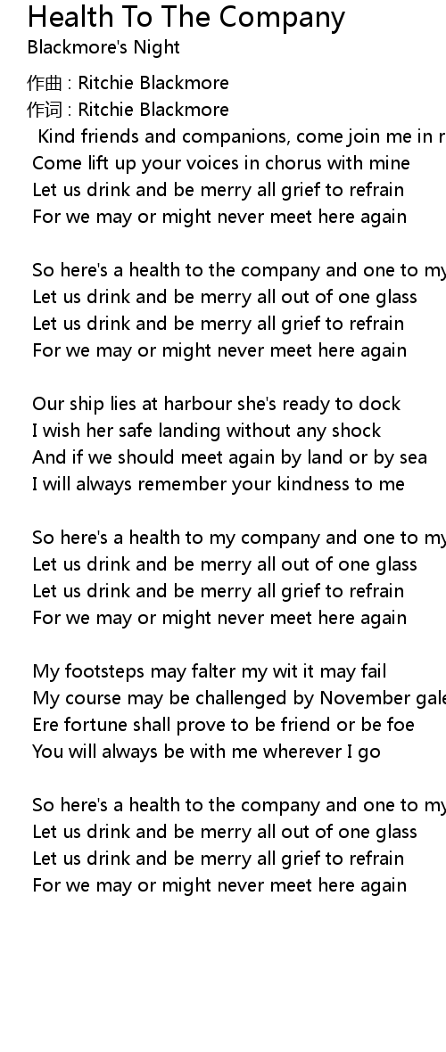 | Song | Health To The Company |