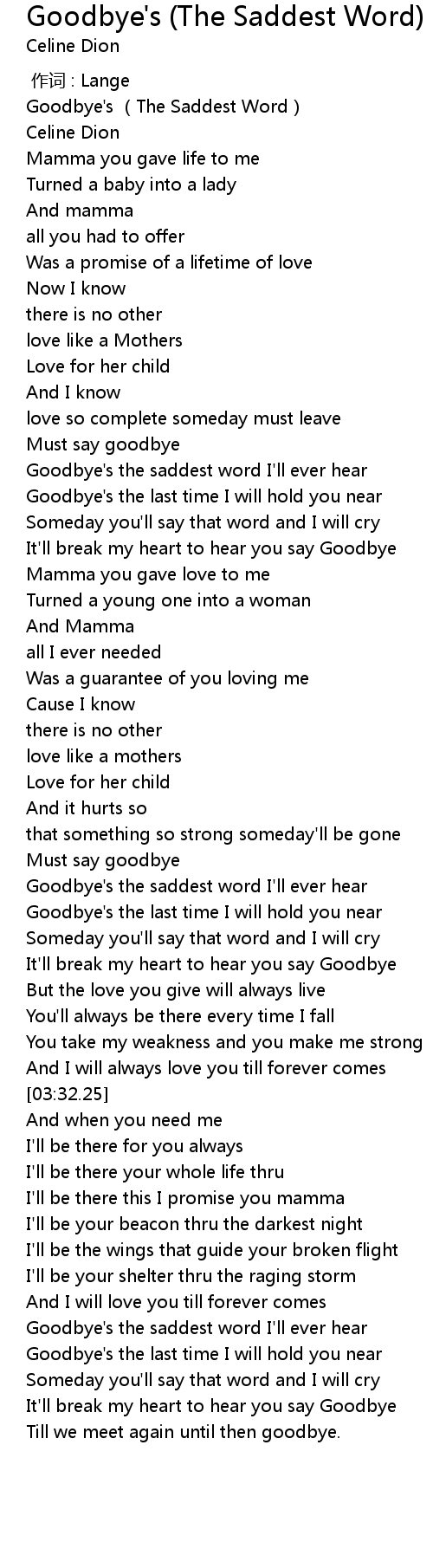 | [02:35.90] | Goodbye's the saddest word I'll ever hear |