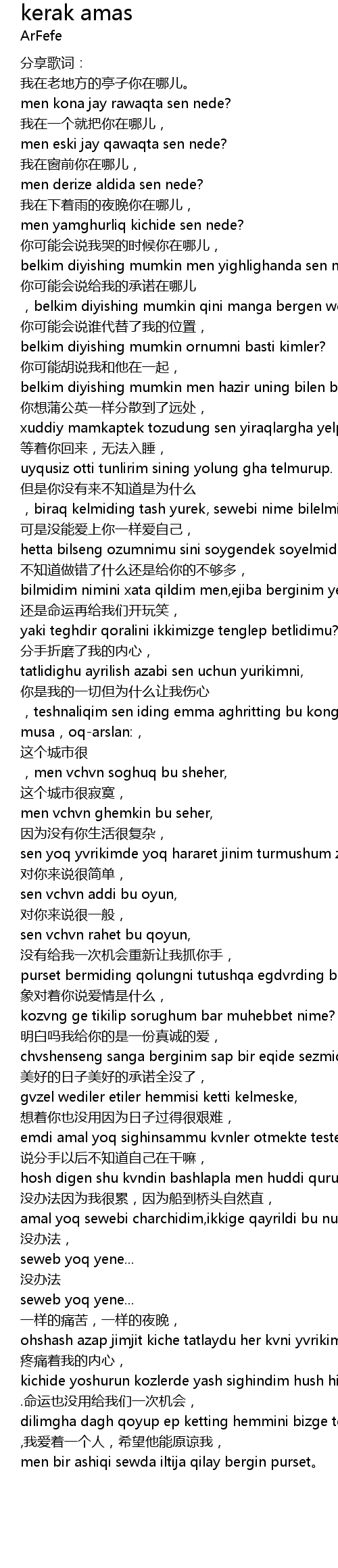 | [01:41.945] | amal yoq sewebi charchidim, ikkige qayrildi bu nurluq kime, |