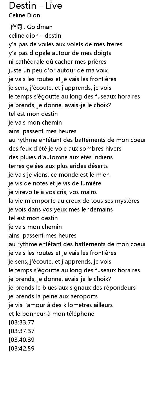 | [00:00.00] | celine dion - destin |