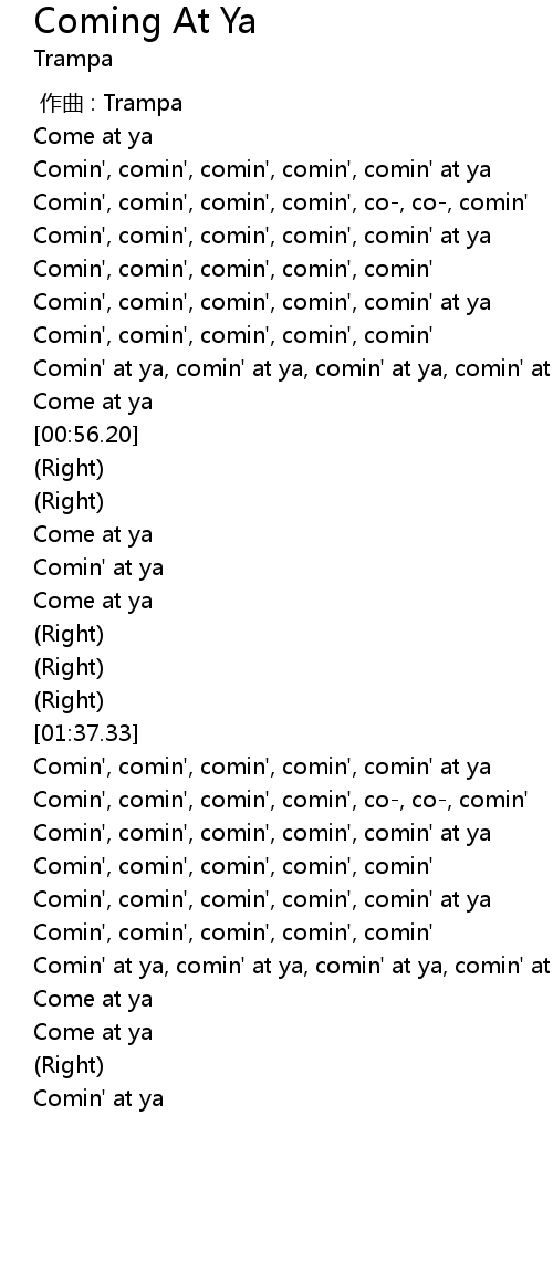 | [00:45.98] | Comin' at ya, comin' at ya, comin' at ya, comin' at ya |