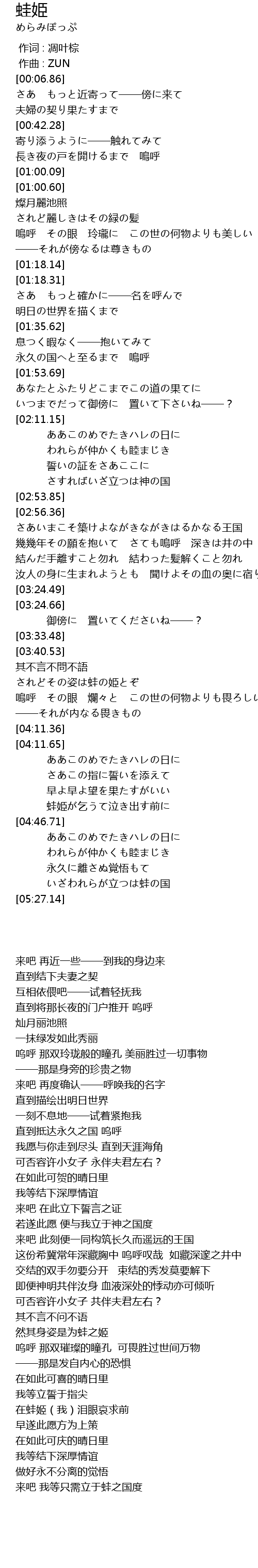 | [04:38.06] | 蛙姫が乞うて泣き出す前に |