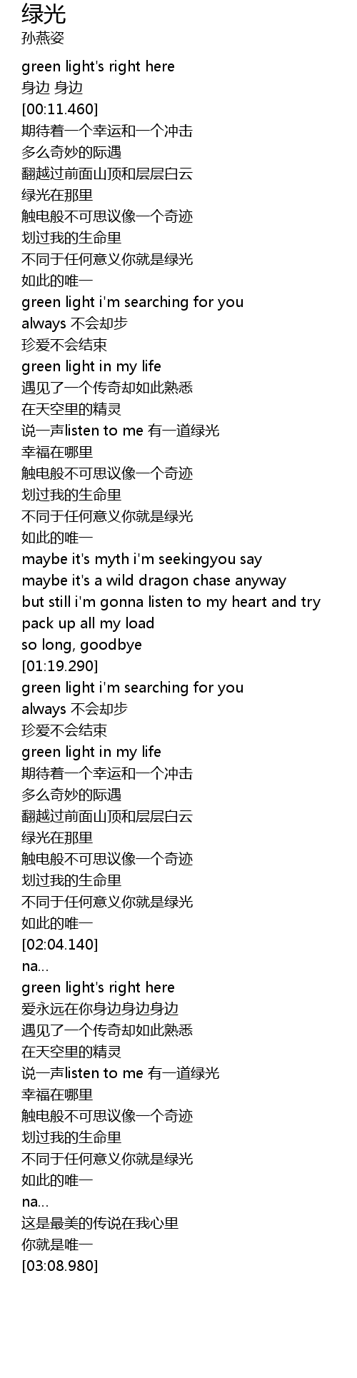 | [01:53.200] | 绿光在那里 |