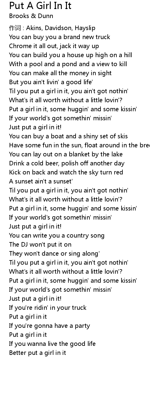 | Til you put a girl in it, you ain't got nothin' | |