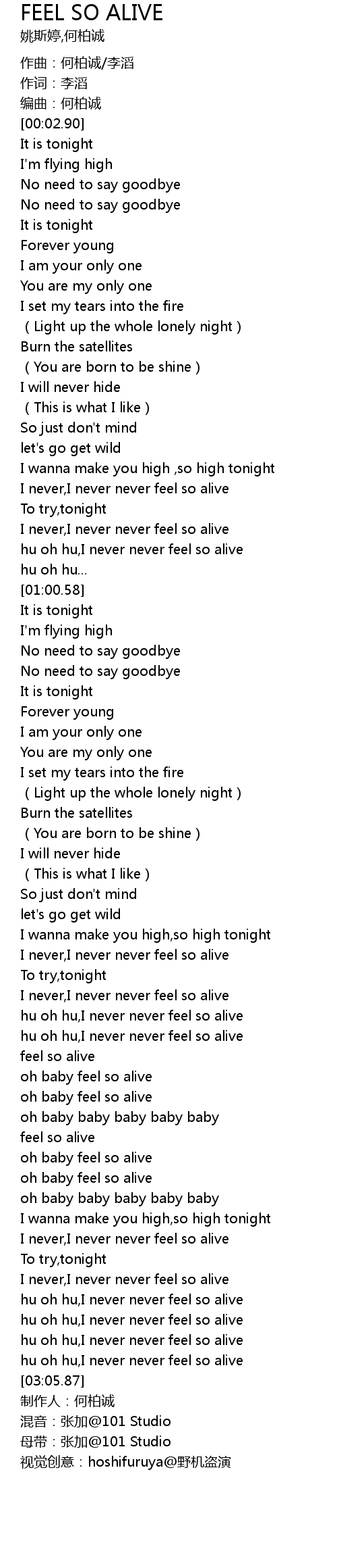 | [02:50.46] | hu oh hu,I never never feel so alive |