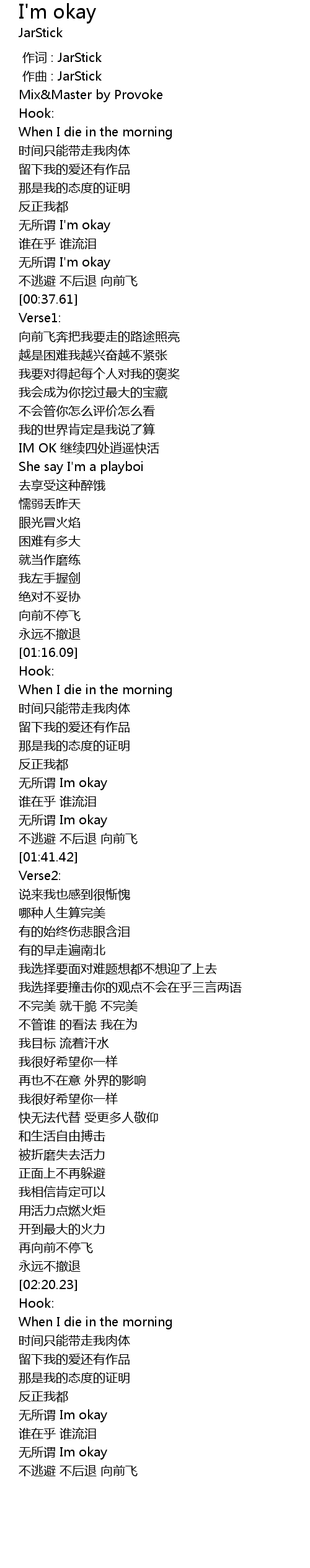 | [01:36.37] | 无所谓 Im okay |