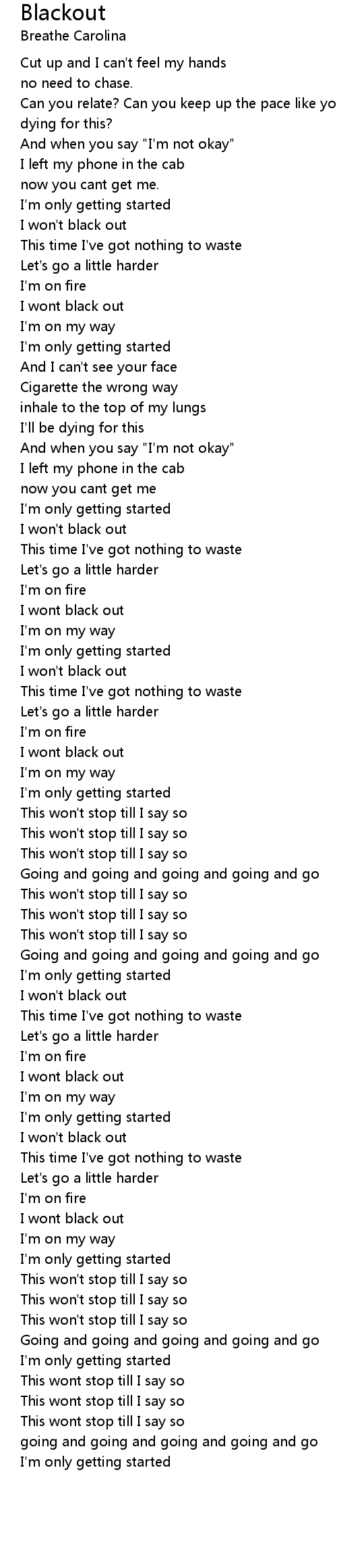 I won't black out |