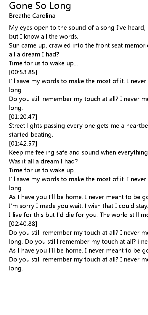 Do you still remember my touch at all? I never meant to be gone so long. Do you stilll remember my touch at all? i never meat to be gone so long. |