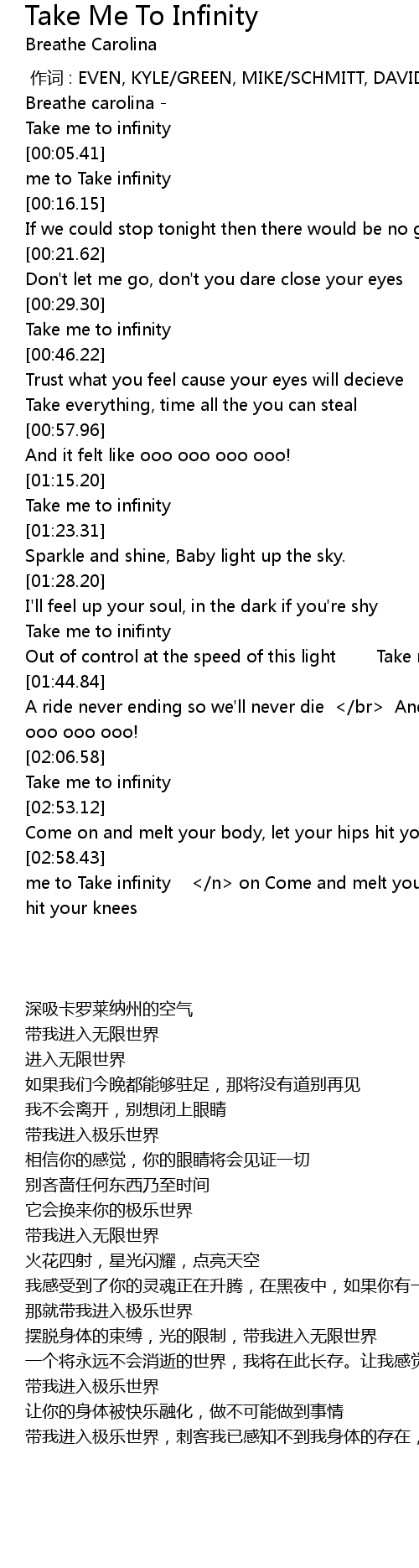 | [01:35.44] | Take me to inifinty |