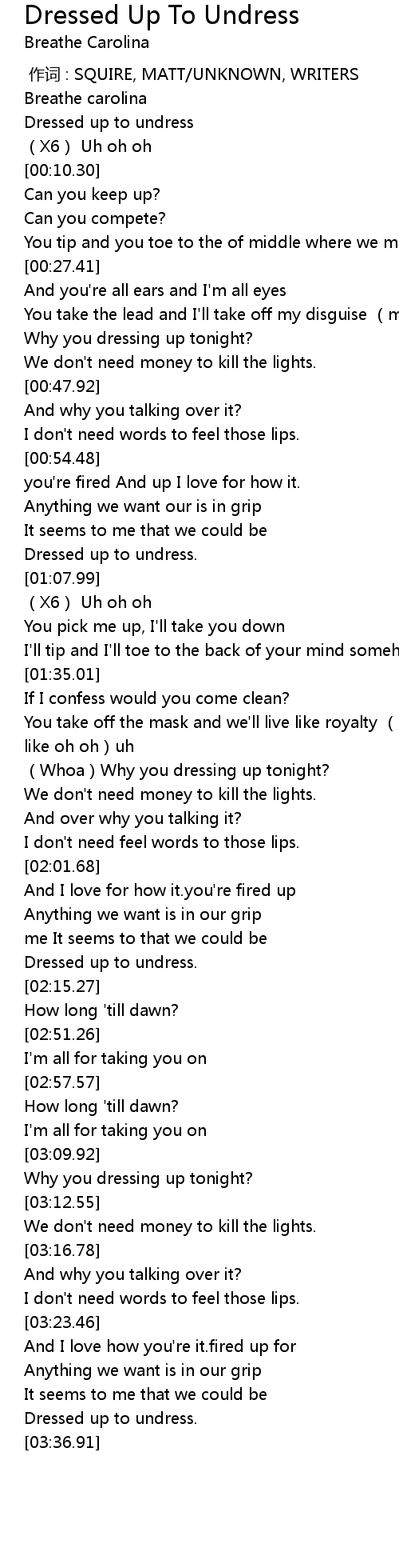 | [00:02.11] | Dressed up to undress |