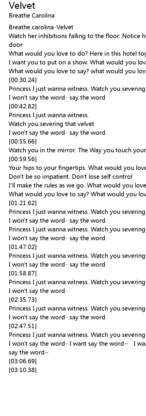 Princess I just wanna witness. Watch you severing that velvet |