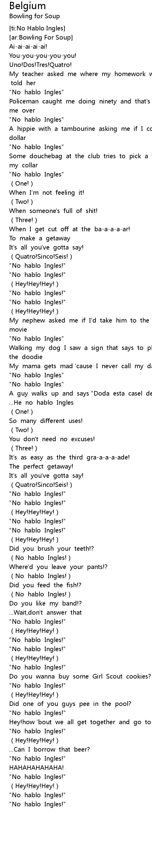 | [02:22.99] | (No hablo Ingles!) |