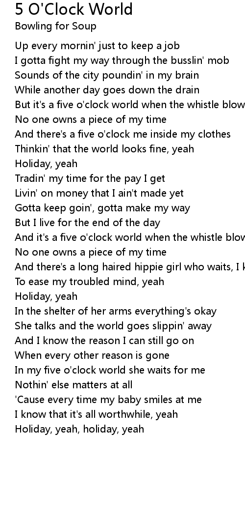 And it's a five o'clock world when the whistle blows |