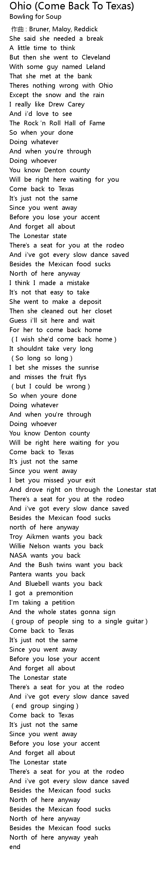 | [01:42.673] | Come back to Texas |