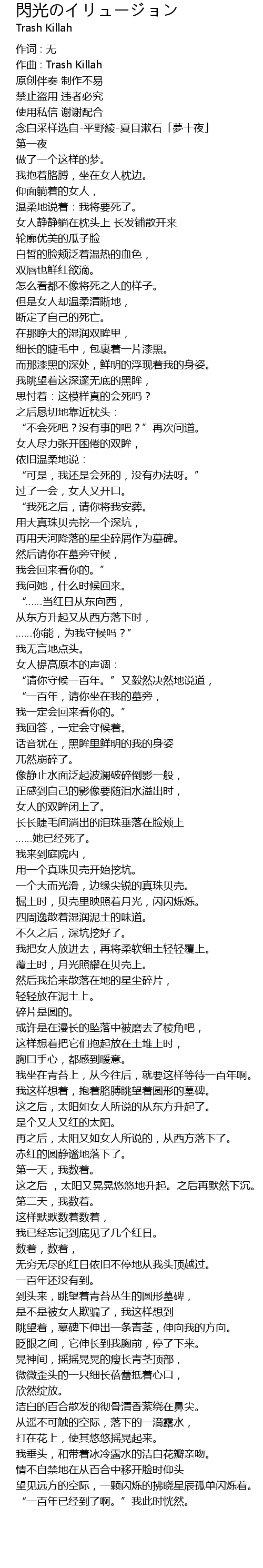 | 念白采样选自-平野綾-夏目漱石「夢十夜」 | |