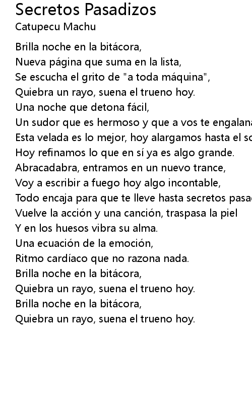 | Song | Secretos Pasadizos |