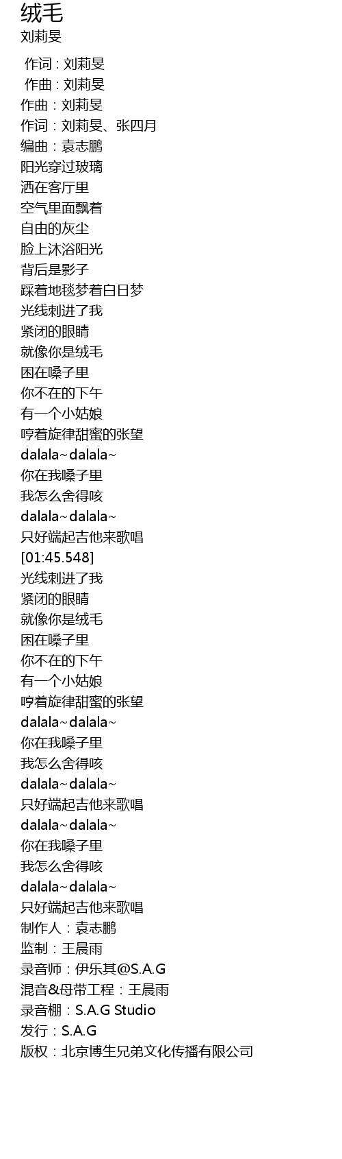 | [03:33.910] | 录音棚:S.A.G Studio |