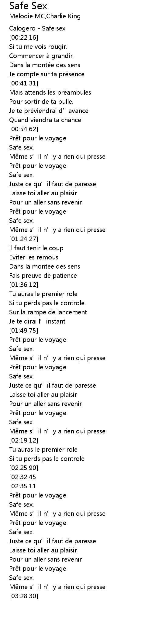 | [00:00.00] | Calogero - Safe sex |