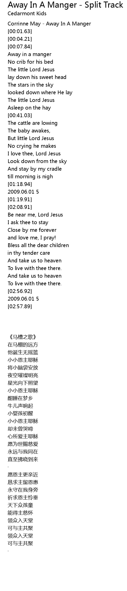 | [00:00.82] | Corrinne May - Away In A Manger |