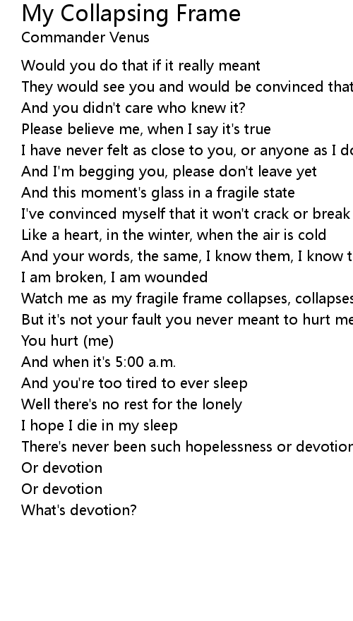 Watch me as my fragile frame collapses, collapses on me, on me |