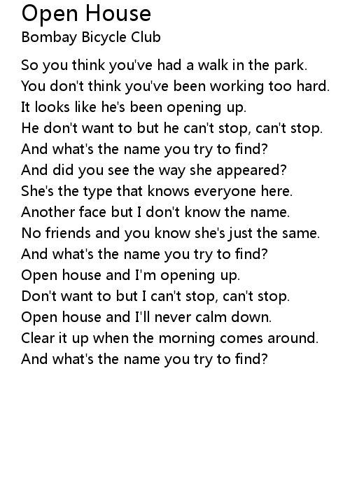 Open house and I'll never calm down. |