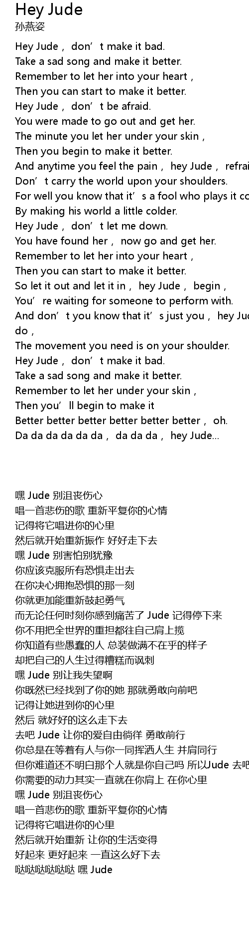 | [02:46.140] | Hey Jude, don' t make it bad. |