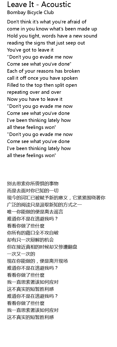You've got to leave it |