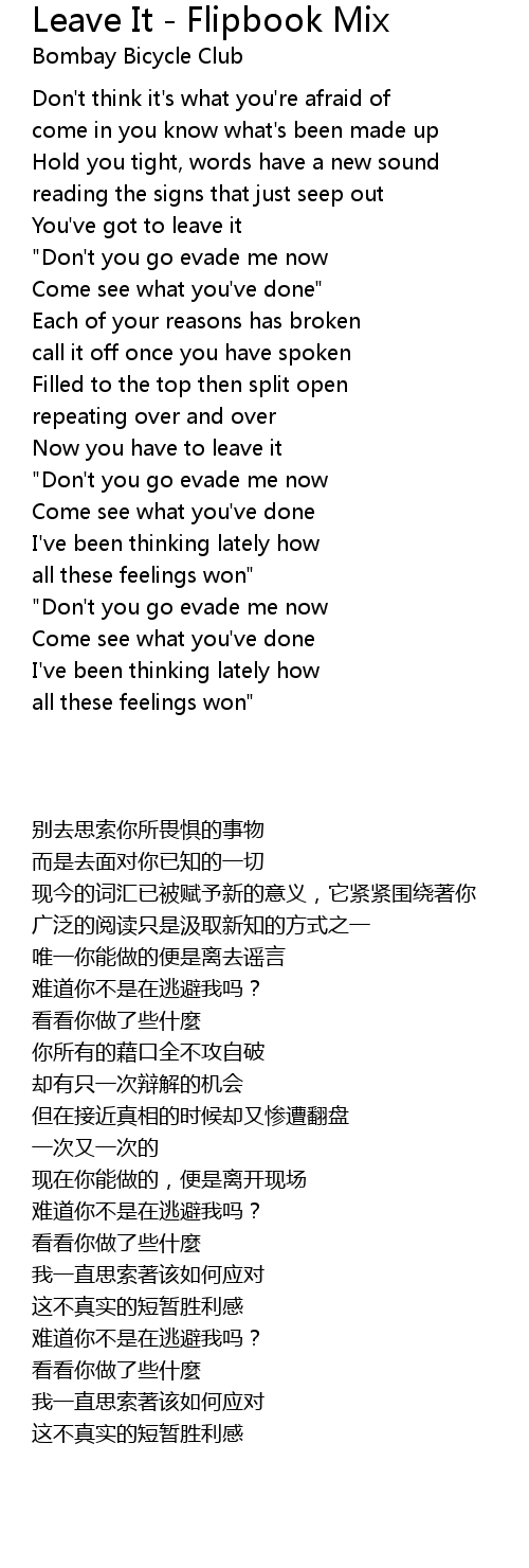 You've got to leave it |