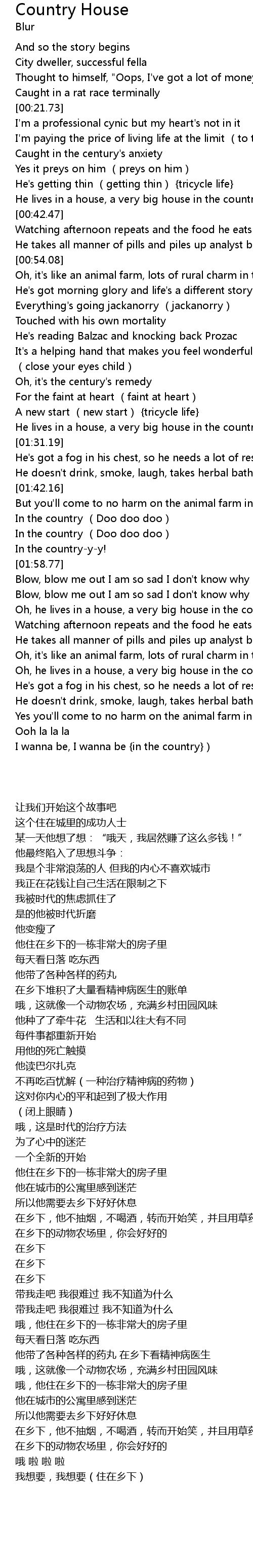 | [01:27.47] | He lives in a house, a very big house in the country |