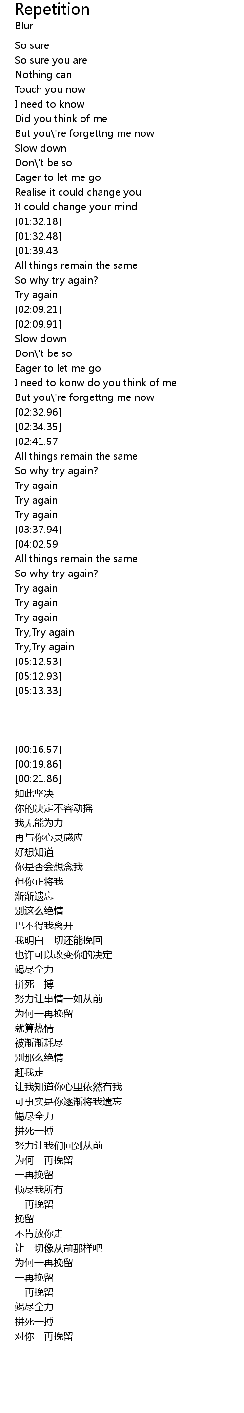 | [01:33.88][01:39.43] | Try, try, try |