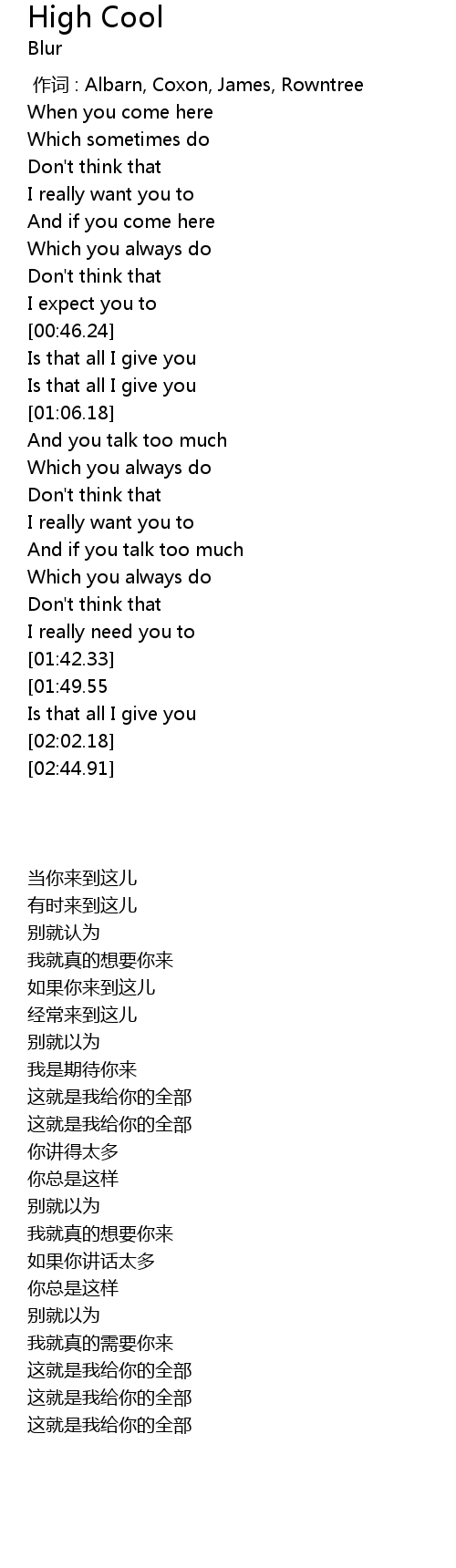 | [00:00.00] | zuò cí : Albarn, Coxon, James, Rowntree |