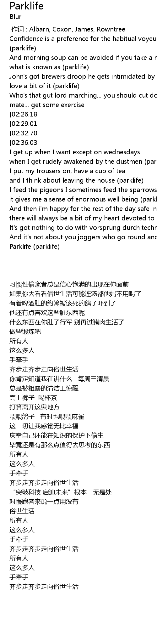 | [02:23.39] | Parklife parklife |