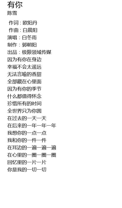 | [00:06.653] | 演唱:白冬雨 |