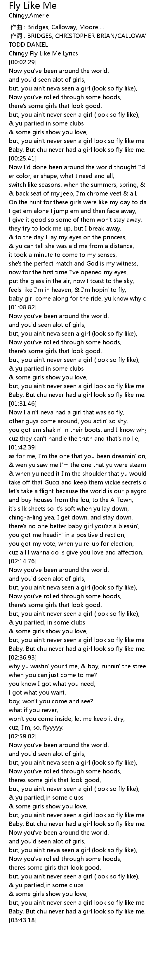 | [00:01.31] | Chingy Fly Like Me Lyrics |