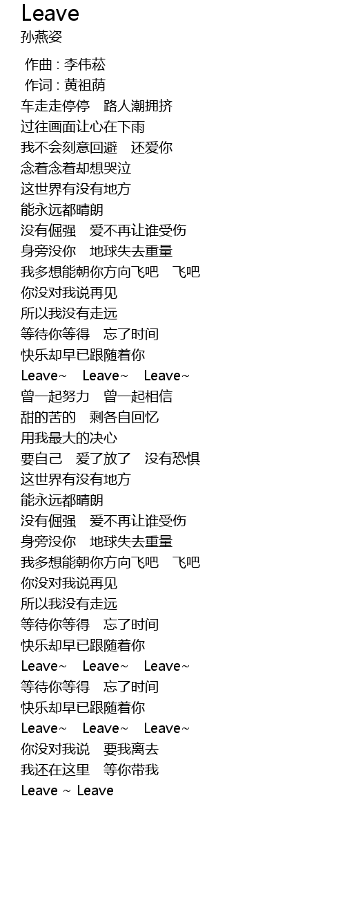 | [01:25.480] | Leave~ Leave~ Leave~ |