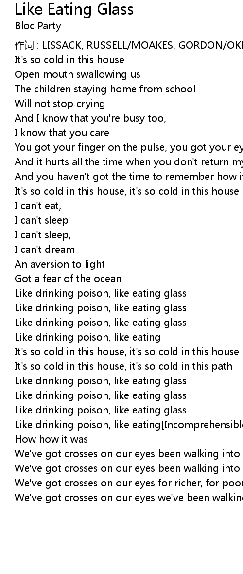 | Song | Like Eating Glass |