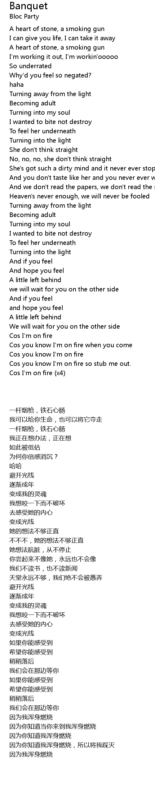 | [02:55.550] | Cos you know I'm on fire so stub me out. |