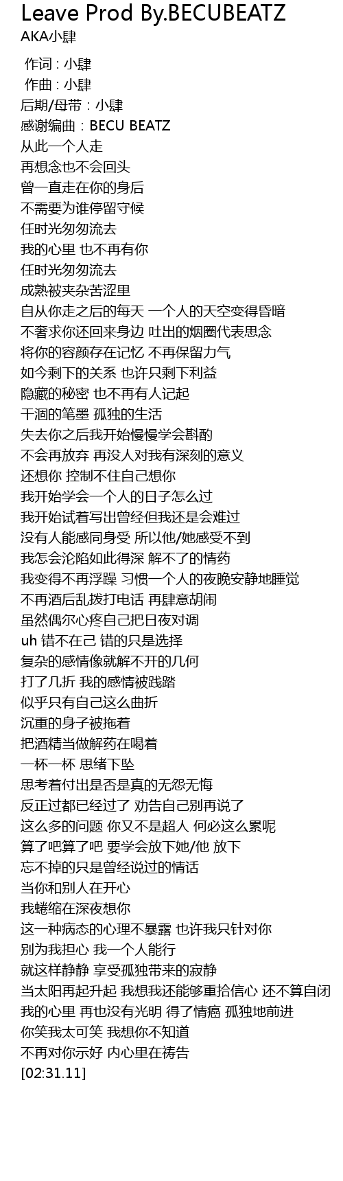 | [00:05.61] | 感谢编曲:BECU BEATZ |