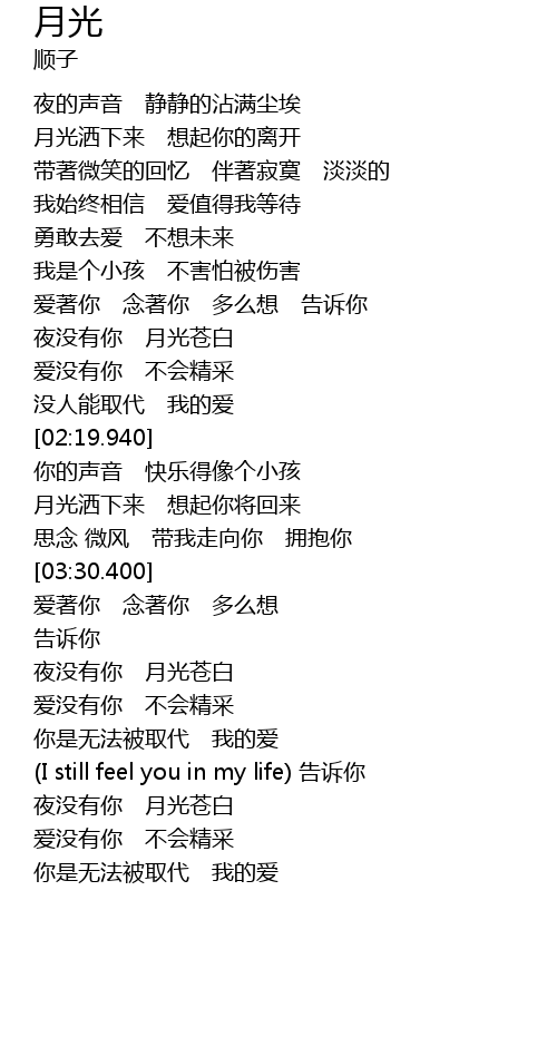 | [03:50.150] | yè méi yǒu nǐ yuè guāng cāng bái |