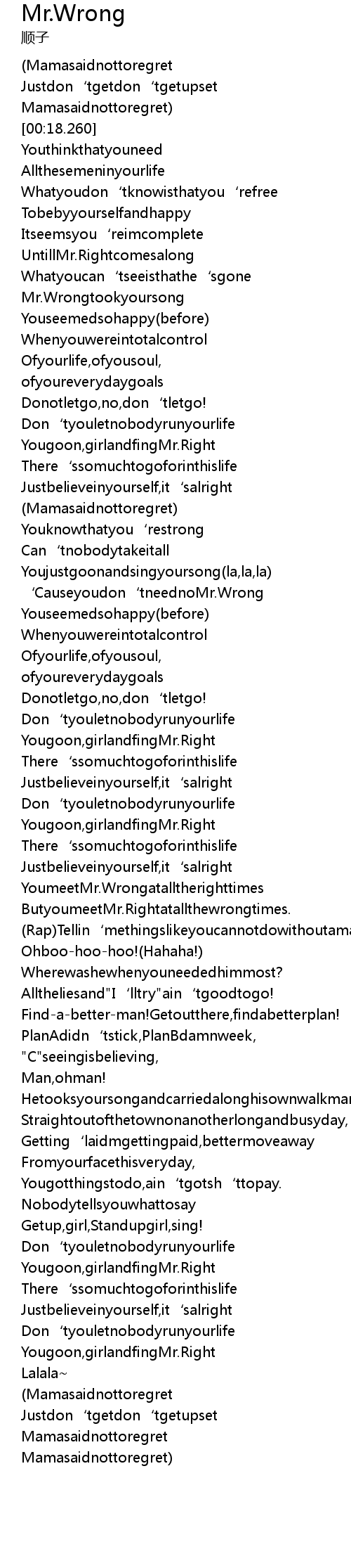 | [01:50.510] | ' Causeyoudon' tneednoMr. Wrong |