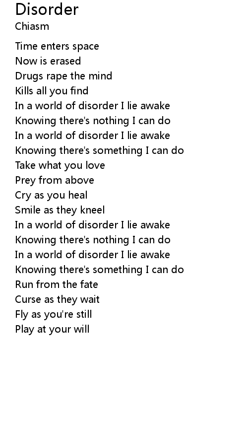 | In a world of disorder I lie awake | |