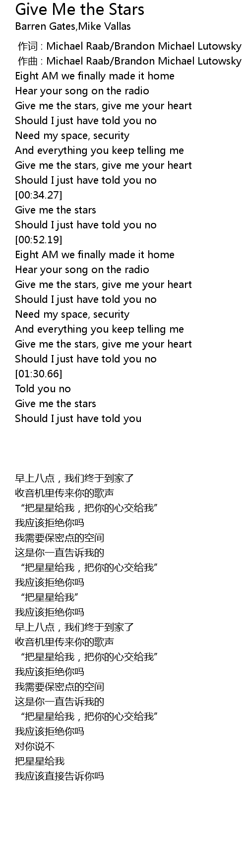 | [00:40.94] | Give me the stars |